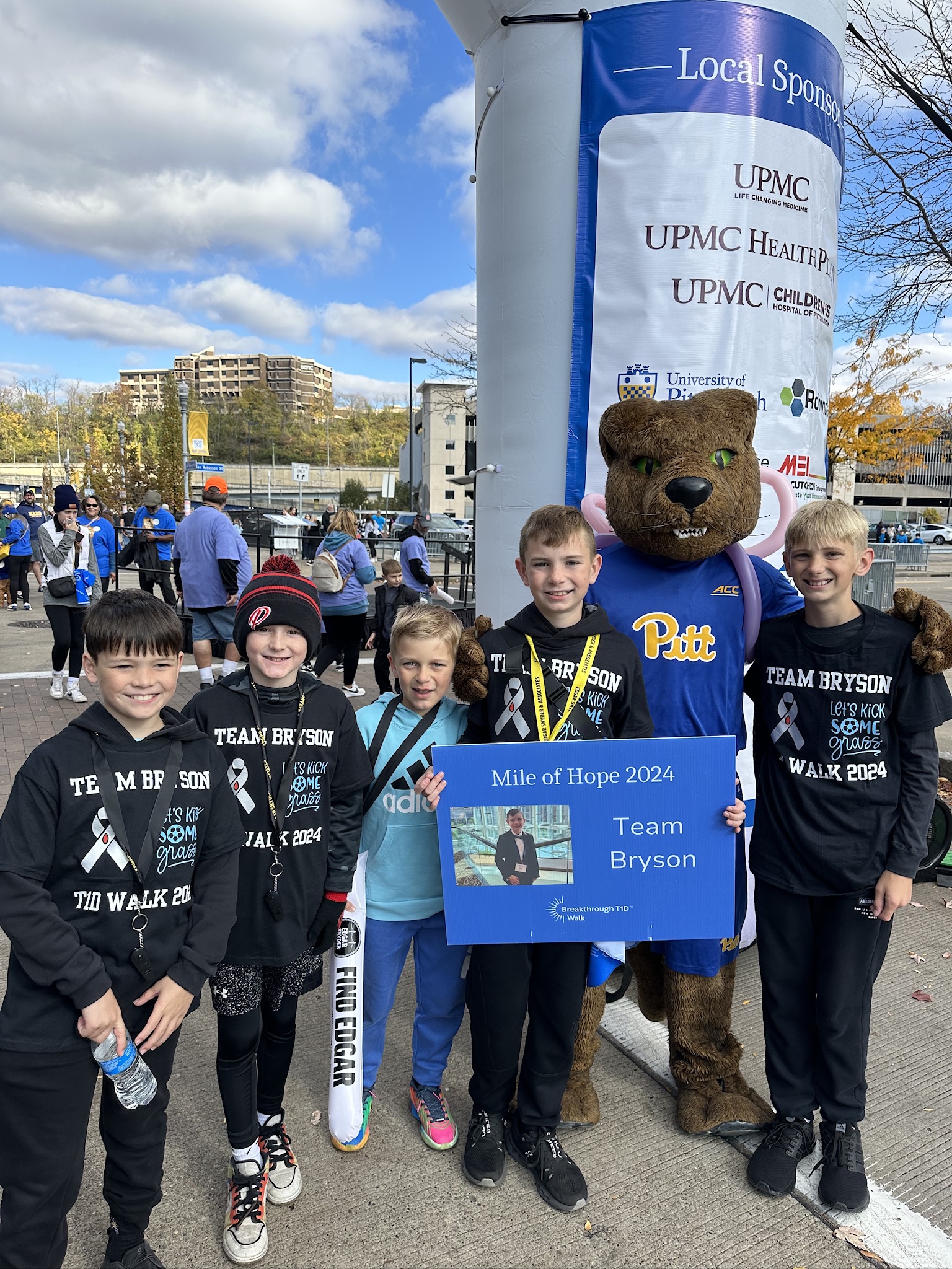 Join Team Bryson for our third annual Breakthrough T1D Walk (formerly JDRF) and our first walk at Acrisure Stadium on October 19, 2025. We’re walking to support Breakthrough T1D and their mission to find a cure for Type 1 Diabetes (T1D). This organization has played a crucial role in helping our family, especially Bryson, find a sense of normalcy through their incredible support and events for children with T1D. We hope you’ll join us for the walk or consider making a donation to our team. Together, we can make a real difference!